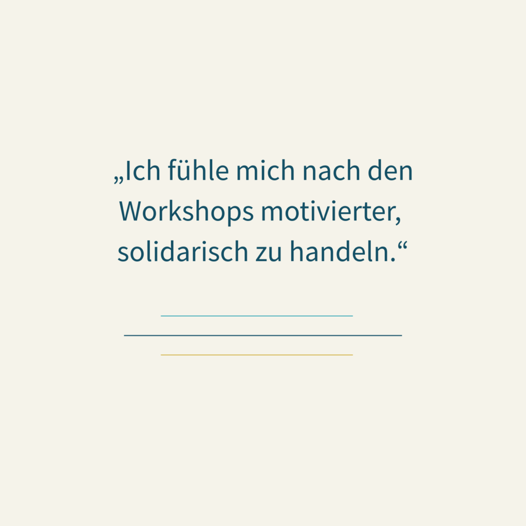 Viele Organisationen erleben dadurch, dass Mitarbeitende sich weniger allein und ohnmächtig fühlen, mehr Verständnis füreinander entwickeln und solidarischer mit den bestehenden Herausforderungen umgehen.